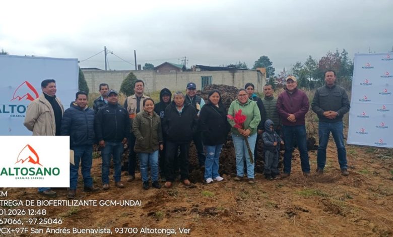 Enero 26 de 2026.- Productores de San Isidro El Rincón del municipio de Atzalan recibieron de Altosano Granjas Carroll más de 100 toneladas de biofertilizante orgánico, con los que tendrán ahorros sustanciales, una producción más sana y sustentable, además de la orientación y seguimiento de parte de las autoridades estatales.