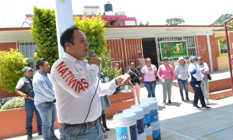 El presidente municipal de Nativitas, Carlos García Sampedro, esta mañana hizo entrega de insumos a la escuela Primaria «Gregorio Torres Quintero» de la comunidad de San Francisco Tenexyecac, con la finalidad de contribuir con su rehabilitación y mejoramiento de su imagen.