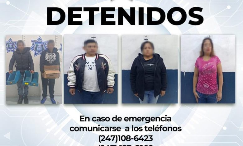 En otro hecho, se recibió una solicitud para atender el reporte de dos personas del sexo femenino y un masculino que se encontraban al interior de una tienda departamental conocida sobre la calle morelos de la ciudad de Huamantla en la que mostraban actitud inusual, por lo que generó sospechas por parte del personal de seguridad. Por este motivo y con la finalidad de prevenir un posible hecho delictivo, se realizó un recorrido interno discreto dentro del establecimiento, permaneciendo en labores de vigilancia, en espera de que las femeninas y el masculino abandonaran el lugar para una revisión conforme al protocolo, lo que permitió asegurar a estas tres personas con cajas de zapatos, así como un rotomartillo de color azul. Por lo que fueron puestas a disposición de la Fiscalía General de Justicia del Estado de Tlaxcala.