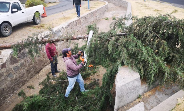 De igual manera, a través de un reporte a los números de emergencias de la Dirección de Seguridad Pública de Huamantla, se retiró un árbol caído sobre el bulevar Cuamanco para evitar obstruya el paso de agua en el canal y se acumule basura.