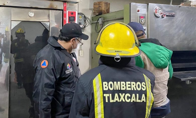 Elementos de la Coordinación de Protección Civil de Huamantla, brindaron apoyo a una panadería del barrio de La Preciosa, que minutos antes habría presentado una explosión por acumulación de gas.
