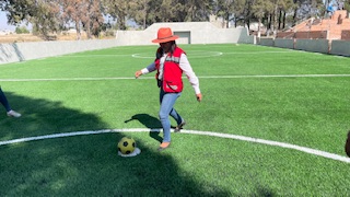 Este proyecto fue realizado a través del programa peso a peso en colaboración con el municipio, incluirá además de la superficie sintética, la instalación de sanitarios, gradas y alumbrado.