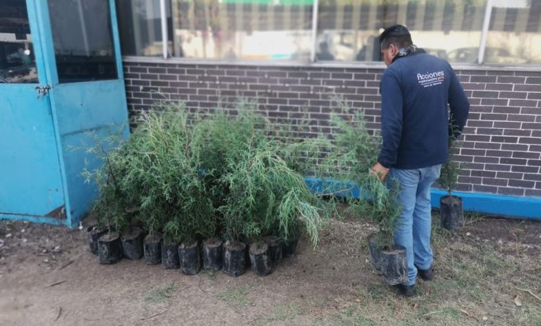 De igual forma, fueron entregados 100 árboles de pinos a los alumnos de la Universidad Pedagógica Nacional (UPN), unidad 291, que están siendo sembrados por los alumnos en los jardines de la misma institución.