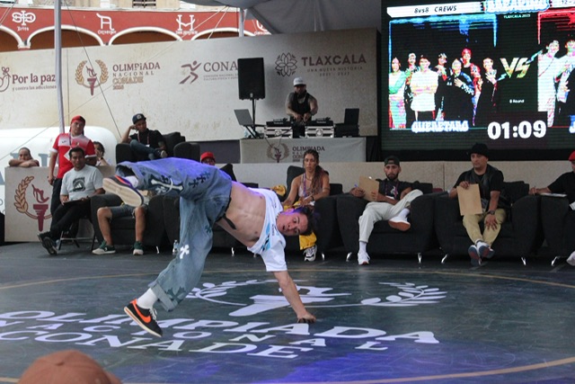 Tlax May 2025.- Siendo uno de los deportes que abrió el telón para la Olimpiada Nacional CONADE, el breaking se despidió en Tlaxcala en esta edición 2025, con los vencedores de los estados de Jalisco, Querétaro y Guanajuato, quienes dejaron todo su esfuerzo en la pista de baile, que se ubicó en la Plaza de Toros “Jorge el Ranchero Aguilar”.