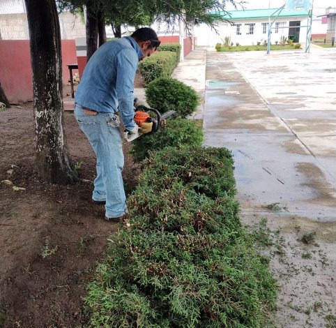 Asimismo, las cuadrillas realizaron la poda de pasto frente al Lienzo Charro y el desyerbe del camellón en esa misma zona; además, se llevaron a cabo acciones de poda de árboles y limpieza en la escuela Lázaro Cárdenas, con el objetivo de mantener espacios seguros y agradables para estudiantes y docentes.