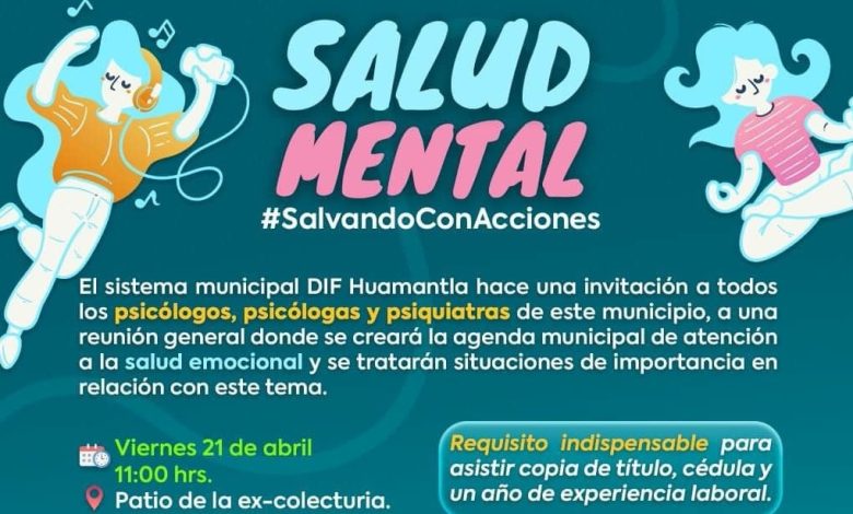El Sistema Municipal para el Desarrollo Integral de la Familia (DIF) Huamantla, convoca a todos los psicólogos, psicólogas y psiquiatras del municipio a participar en una reunión general para plantear una agenda de atención a la salud emocional.