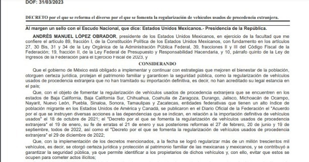 El objetivo primordial es regularizar todos los vehículos usados de procedencia extranjera que no hayan tramitado su importación definitiva, o bien que no tengan acreditada su legal estancia en territorio mexicano.