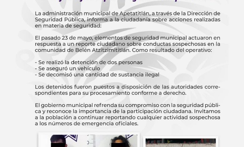 Reiteramos nuestro compromiso con la tranquilidad de las familias de Apetatitlán y reconocemos la valiosa participación ciudadana.