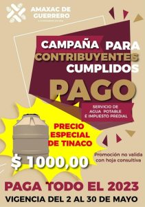 El Ayuntamiento de Amaxac de Guerrero ha lanzado una campaña dirigida a los contribuyentes cumplidos, en la que ofrece la oportunidad de pagar impuestos prediales y servicios de agua potable durante todo el 2023 a un costo accesible.