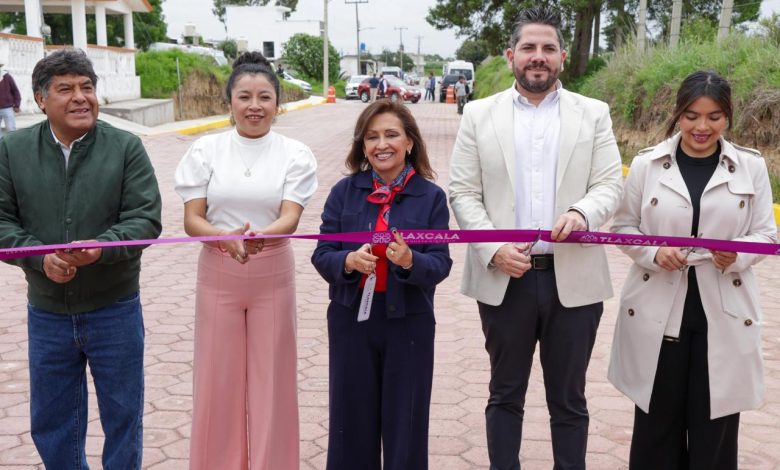 Tlax Jul 2025.- La gobernadora Lorena Cuéllar Cisneros encabezó la entrega de obra pública en la avenida Hidalgo, en el municipio de San Lucas Tecopilco, consistente en la construcción de guarniciones, banquetas, obra civil, señalamientos y pavimento con adoquín, con una inversión superior a 1 millón 587 mil pesos que beneficiará a 2 mil 892 habitantes.