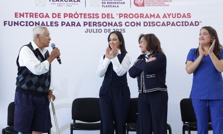 Tlax Jul 2025.- Al encabezar la segunda entrega de prótesis correspondientes a 2025 del programa “Ayudas Funcionales para Personas con discapacidad” de la Secretaría de Bienestar, la gobernadora Lorena Cuéllar Cisneros subrayó que más allá de las obras de infraestructura, son los programas que transforman vidas los que definen el verdadero sentido del servicio público.