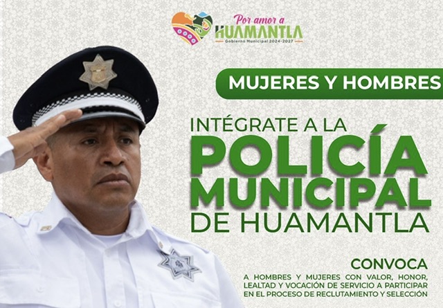 Con esta convocatoria se busca sumar a mujeres y hombres comprometidos con su comunidad, que deseen servir con responsabilidad, disciplina y vocación de proteger a las familias huamantlecas.