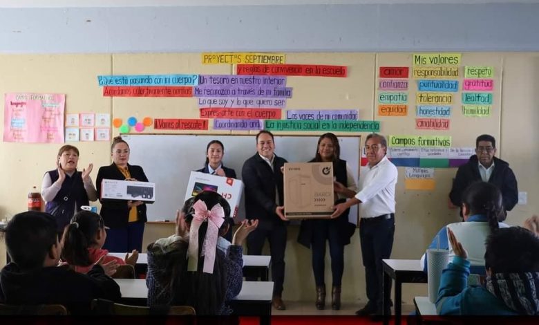 Gobierno de Nativitas fortalece la educación entregando equipos de cómputo a primaria