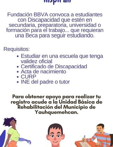 El Gobierno Municipal de Yauhquemehcan invita a todas las familias con estudiantes que puedan beneficiarse de este programa a que acudan y aprovechen esta valiosa oportunidad que la Fundación BBVA México ofrece para mejorar la educación y el futuro de los jóvenes con discapacidad.