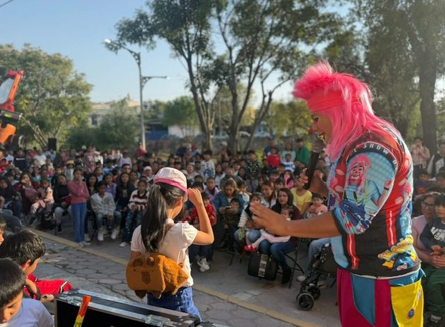 El evento contó con la presentación del payaso Talachitas Talachas, quien ofreció un espectáculo lleno de música, diversión e interacción, generando momentos de entusiasmo tanto en niñas y niños como en los adultos presentes.