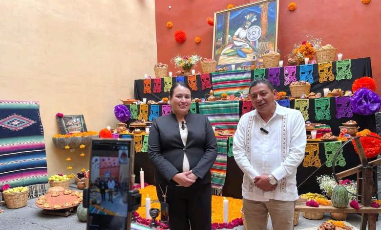 Durante la ceremonia, Steve Del Razo Montiel, titular de Casa Tlaxcala en la Ciudad de México, agradeció públicamente a la presidenta municipal de Chiautempan, Blanca Angulo Meneses, por coordinar los trabajos para que la presentación de la ofrenda fuera un éxito.