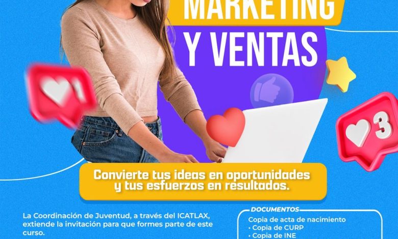 Tlax Ene 2026.- El Gobierno Municipal de Huamantla, a través de la Coordinación de Juventud y en colaboración con el ICATLAX, invita a las y los jóvenes huamantlecos a formar parte del Curso de Marketing y Ventas, una capacitación diseñada para fortalecer habilidades comerciales, impulsar proyectos personales y generar mayores oportunidades de desarrollo económico.