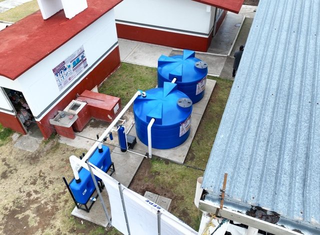Como parte de las acciones, se instalaron sistemas de captación de agua pluvial con capacidad de entre 5 mil y 10 mil litros, lo que permite reducir hasta en un 75 por ciento el consumo de agua en los planteles beneficiados.