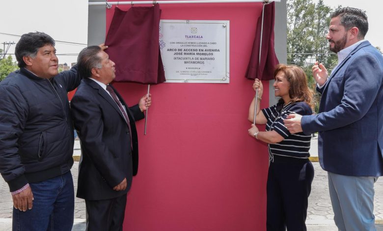Tlax Jun 2025.- La gobernadora Lorena Cuéllar Cisneros entregó la obra de construcción del arco de acceso en la avenida José María Morelos de Ixtacuixtla con una inversión superior a los 2 millones de pesos como parte de su compromiso de entregar obra en los 60 municipios sin distinción.