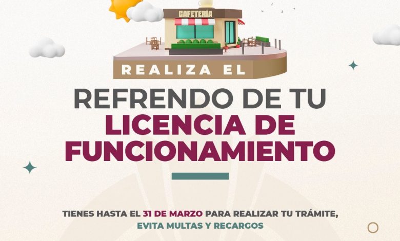A fin de fortalecer la cultura de la legalidad y el ordenamiento comercial en la capital, el Ayuntamiento de Tlaxcala, a través de la Tesorería Municipal y la Dirección de Ingresos, mantiene abierta la convocatoria para que los propietarios de negocios realicen el refrendo de sus Licencias de Funcionamiento correspondientes al ejercicio fiscal 2026 e informa que el periodo para realizar este trámite concluirá el próximo 31 de marzo.