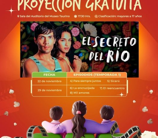 Tlax Nov 2024.- Para promover las actividades culturales y lúdicas entre las nuevas generaciones, el Gobierno Municipal de Huamantla invita a toda la población mayor de 17 años a la proyección gratuita de la serie “El secreto del río”, los próximos viernes 22 y 29 de noviembre, a las 17:30 horas, en la sala del auditorio del Museo Taurino.