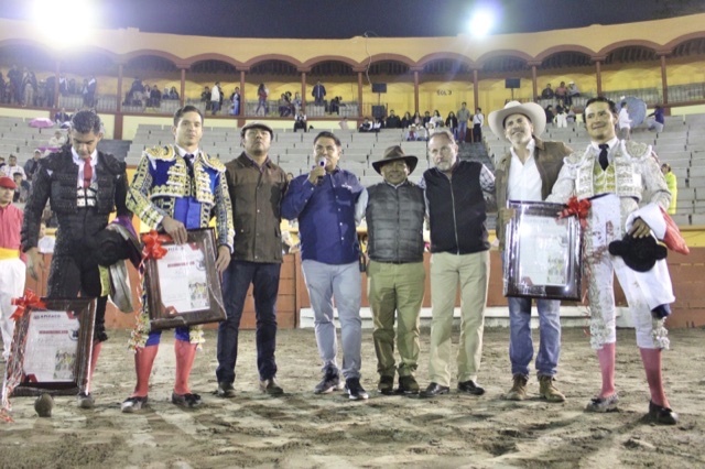 Tras caer el sexto toro de la tarde, el presidente municipal acompañado del Director del Instituto Tlaxcalteca de Desarrollo Taurino; el matador José Luis Angelino y el Director de Asuntos Taurinos del Municipio de Apizaco; Lázaro Rosas, entregaron los premios a los triunfadores.