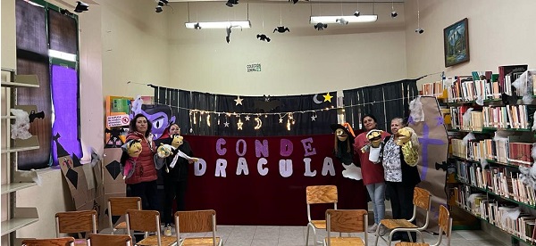 Asimismo, la Biblioteca “Lázaro Cárdenas” presentó la obra de Bram Stoker «Drácula», en una versión para niños realizada con los divertidos y expresivos títeres bocones, en donde se pudo notar la emoción niños y niños, quienes disfrutaron la función.