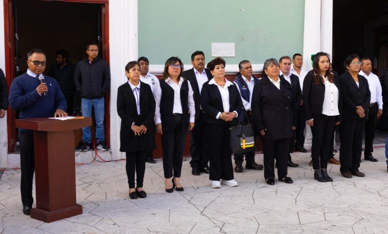 LAS COMUNIDADES DE LOS PILARES, CUAUHTÉMOC Y LA ESCUELA PRIMARIA BENITO JUÁREZ PARTICIPAN EN CEREMONIA DE HONORES A LOS SÍMBOLOS PATRIOS EN HUAMANTLA