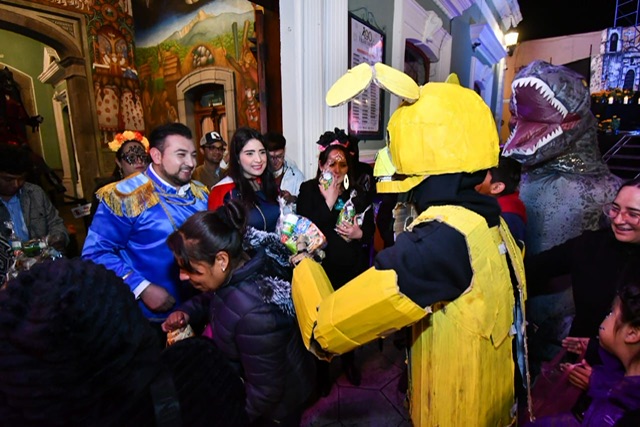 Tlax. Nov 2024.- Un desfile de personajes llenos de leyenda y fantasía se dio cita esta noche del 1 de noviembre frente al Palacio Municipal de Huamantla, para recibir la tradicional «calaverita» de manos del Presidente Municipal, Salvador Santos Cedillo.