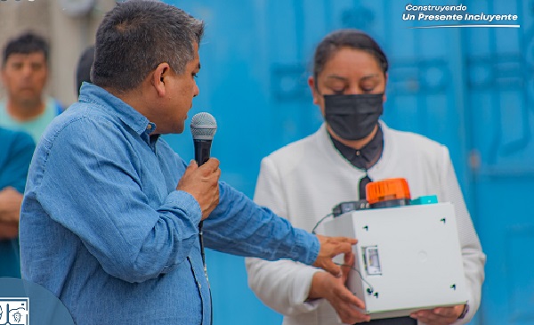 Oracio Tuxpan ya entregó 31 alarmas vecinales en diferentes calles de Axocomanitla.