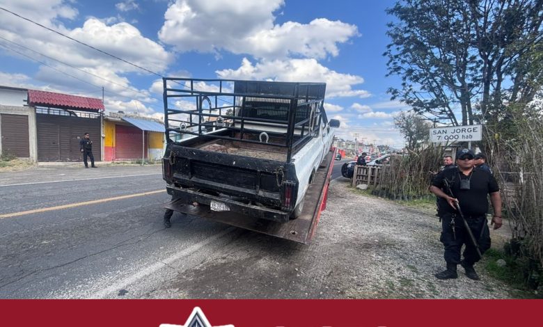 Este lunes, tras una inspección minuciosa, en la comunidad de San Jorge Tezoquipan, elementos de seguridad detectaron una camioneta con indicios de alteración en los números de identificación.