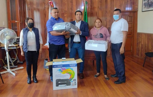 Presidente de Tetlanohcan entrega impresora a Telesecundaria Cuatro Señoríos en Aquiahuac.