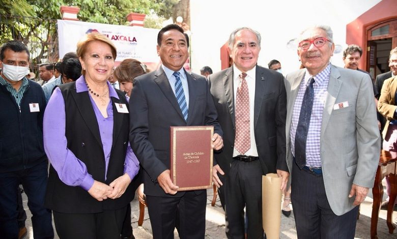 En el marco de la celebración del Día del Archivista, el Ayuntamiento de Tlaxcala recibió de manos del doctor Baltazar Brito Guadarrama, director de la Biblioteca del Museo Nacional de Antropología e Historia, el facsímil de las Actas de Cabildo del Ayuntamiento de Tlaxcala del año 1546 a 1567.