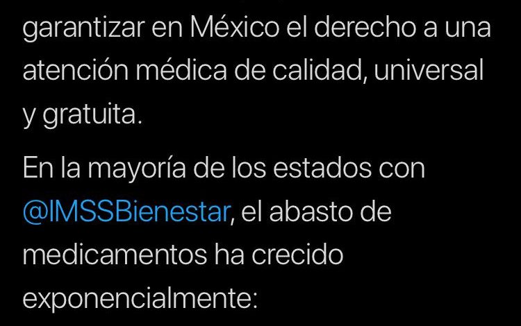 Por lo que “avanzamos en el propósito de garantizar en México el derecho a una atención médica de calidad, universal y gratuita”.