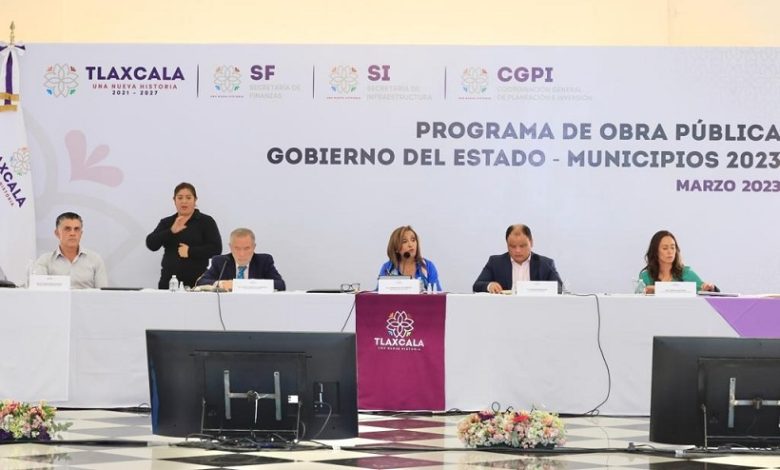La gobernadora Lorena Cuéllar Cisneros sostuvo una reunión con las y los 60 alcaldes para presentarles el Programa de Obra Pública Gobierno del Estado–Municipios 2023, un esquema de coinversión peso a peso con el fin de apoyarlos en la ejecución de proyectos que contribuyan al desarrollo del estado y beneficien a la población tlaxcalteca.