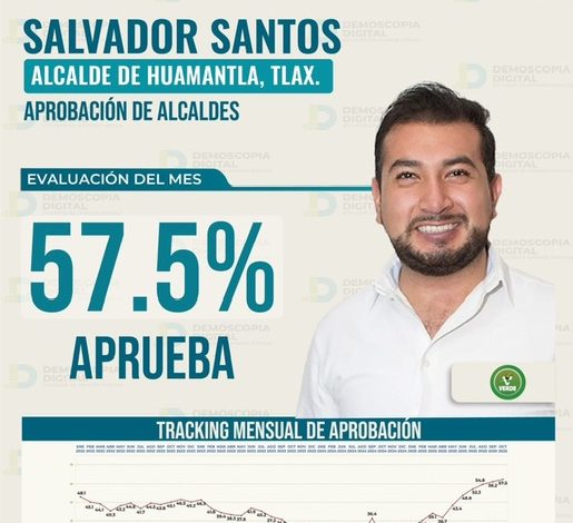Este resultado coincide con la medición de Demoscopia Digital, que en su ranking estatal lo ubica en el primer lugar entre los alcaldes de Tlaxcala, obteniendo una aprobación del 57.5%, consolidándose como el mejor evaluado en la entidad.