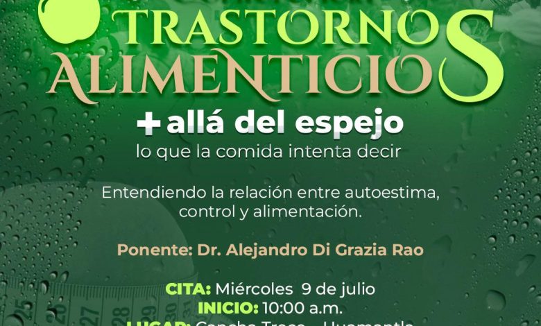 Como parte del programa “Construyendo Padres Conscientes”, el Sistema Municipal DIF Huamantla invita a madres, padres, tutores y público en general a la conferencia “Trastornos alimenticios: Más allá del espejo, lo que la comida intenta decir”, impartida por el Dr. Alejandro Di Grazia Rao, especialista en salud emocional.