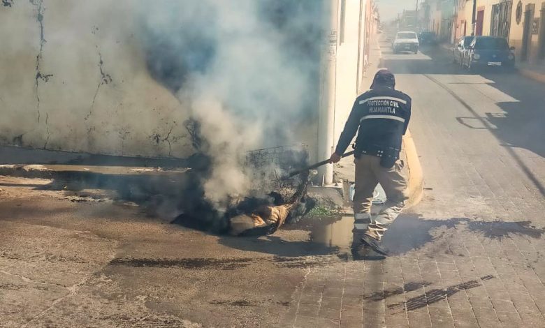Los hechos se registraron en calle Reforma sur y Negrete, donde policías municipales identificaron que se estaba quemando un colchón abandonado en la calle junto a una pila de basura, por lo que solicitaron el apoyo de la Coordinación de Protección Civil de Huamantla para sofocar el fuego que ya alcanzaba una altura considerable, asegurando el área y protegiendo a los transeúntes de posibles daños.