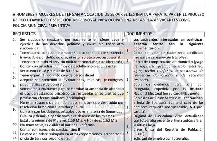 ¡Únete al Equipo! Convocatoria de Reclutamiento para Policía Municipal en San Francisco Tetlanohcan